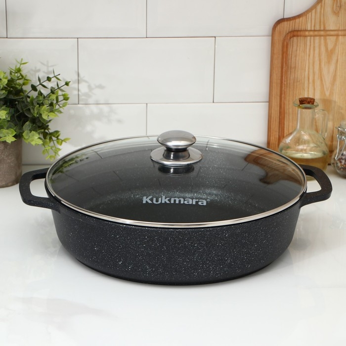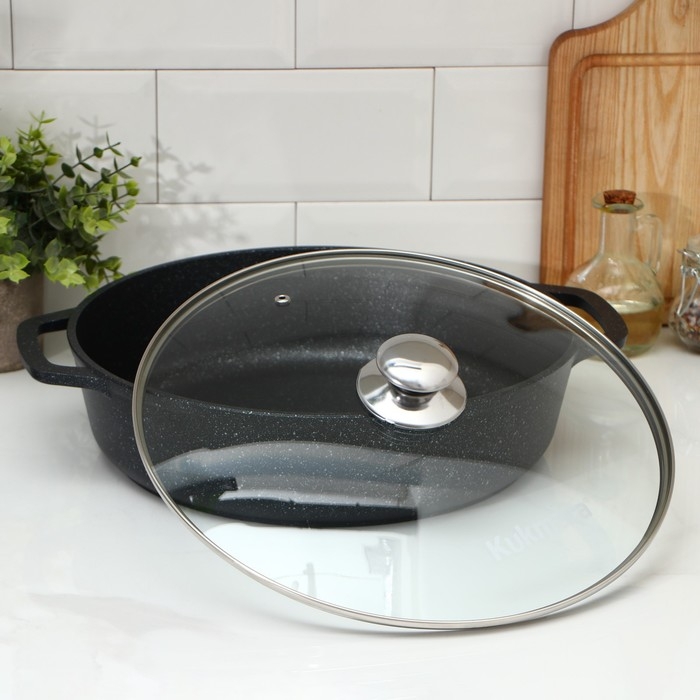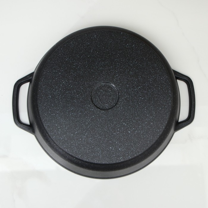 Сотейник, d=32 см, стеклянная крышка, литые ручки, антипригарное покрытие, цвет тёмный мрамор