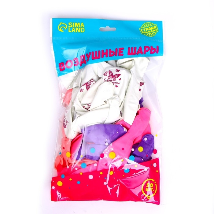 Воздушный шар латексный 12" «С днём рождения. Бабочка», 50 шт.