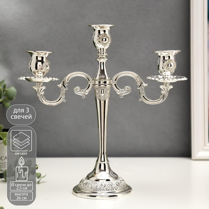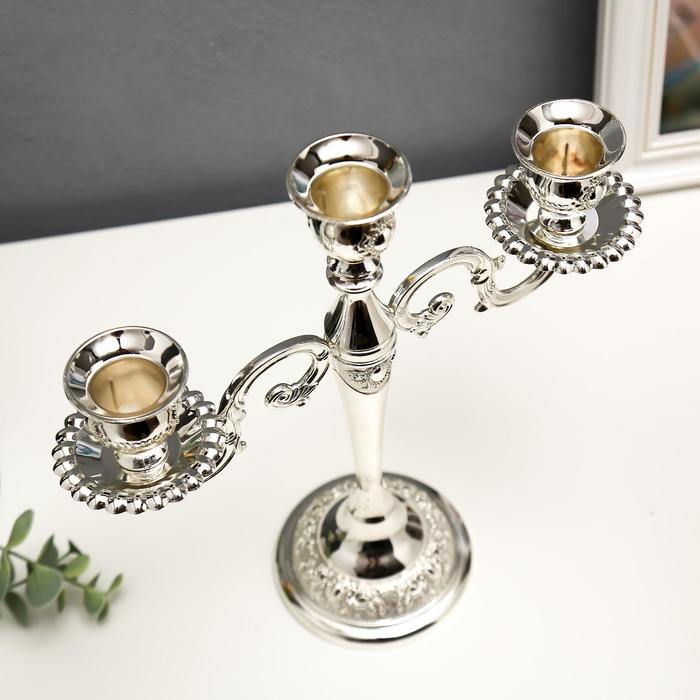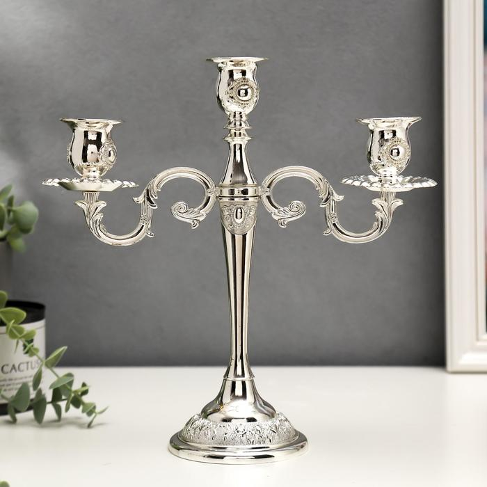 Подсвечник металл на 3 свечи "Медальон" серебро 26х26х9,2 см