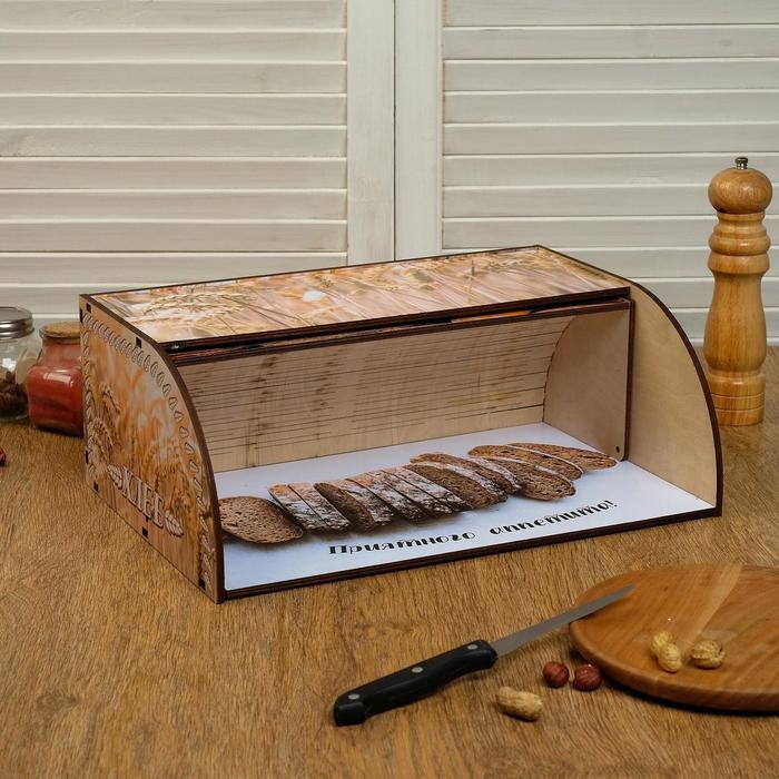 Хлебница деревянная "Приятного аппетита", цветная, 38х26х14 см