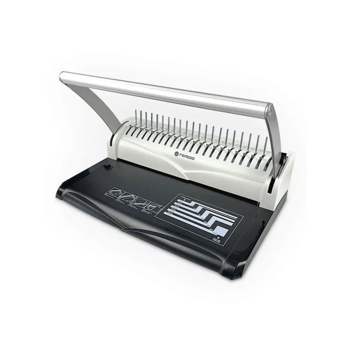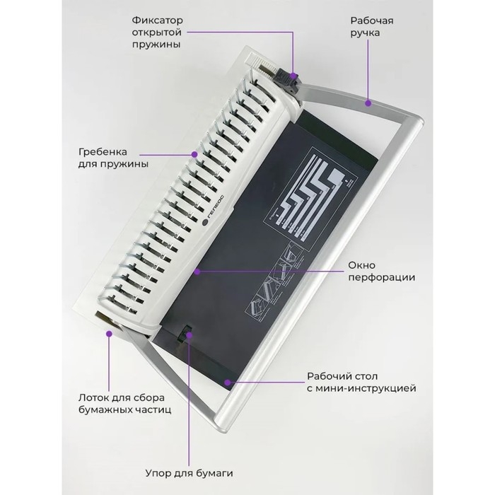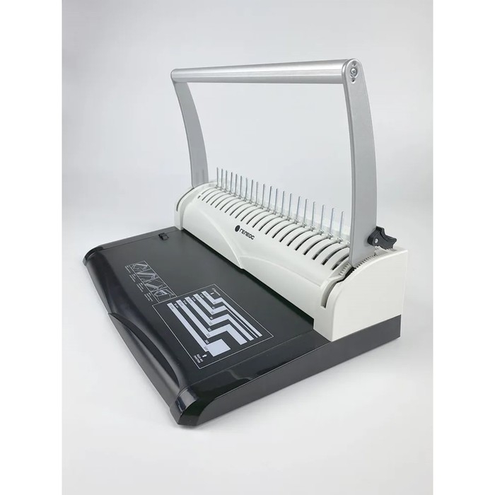 Станина переплетчика выполнена из металла, это обеспечивает устойчивость аппарата во время работы. Аппарат можно легко переносить с места на место с помощью ручки на станине.Также для удобства перфорации листов имеется регулируемый упор для бумаги формата А4 и меньше.