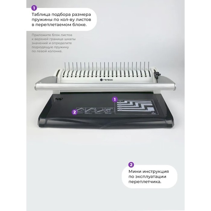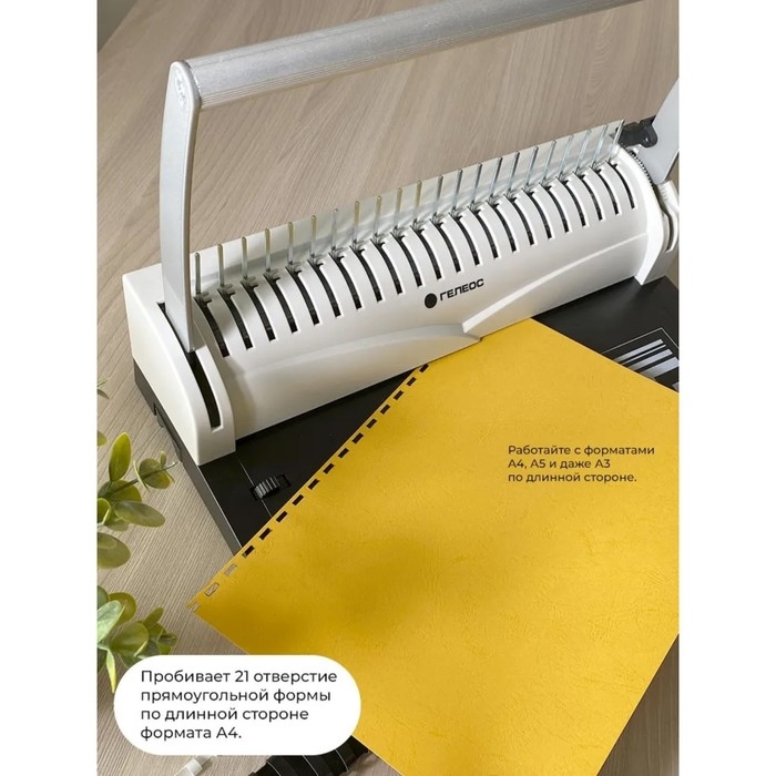Брошюровщик для пластиковой пружины, перфорация до 13 листов, переплетение до 500 листов, Гелеос "БП-13"