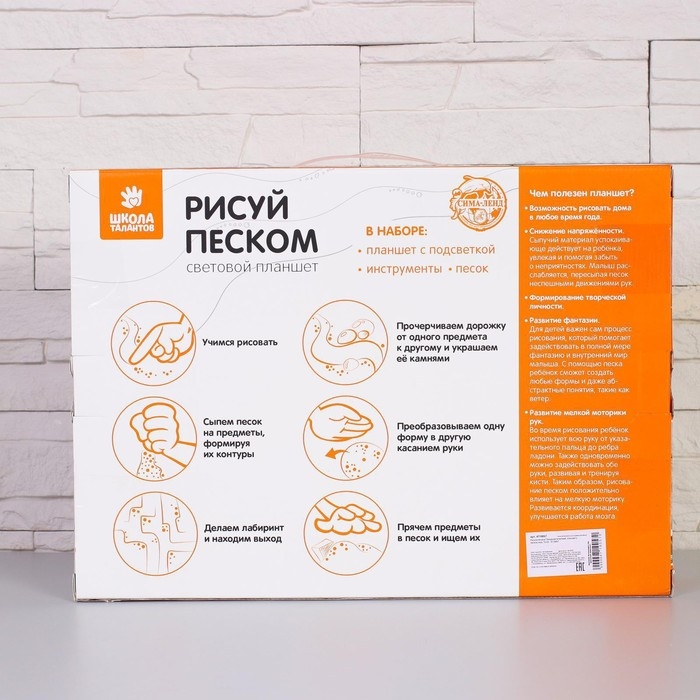 Планшет «Рисование песком», 27 х 39 см, песок 1 кг, 10 фигурок, набор для творчества