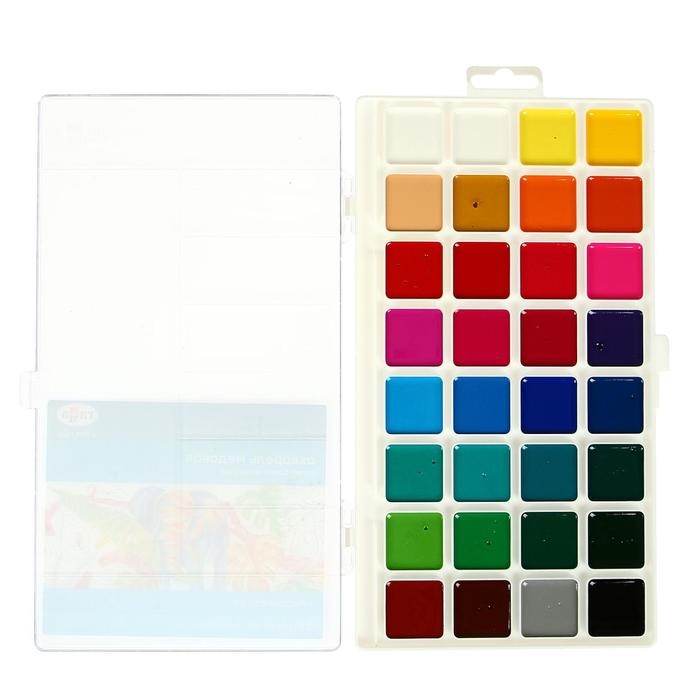 Акварель 32 цвета "Гамма" "Классическая", медовая, без кисти, пластик