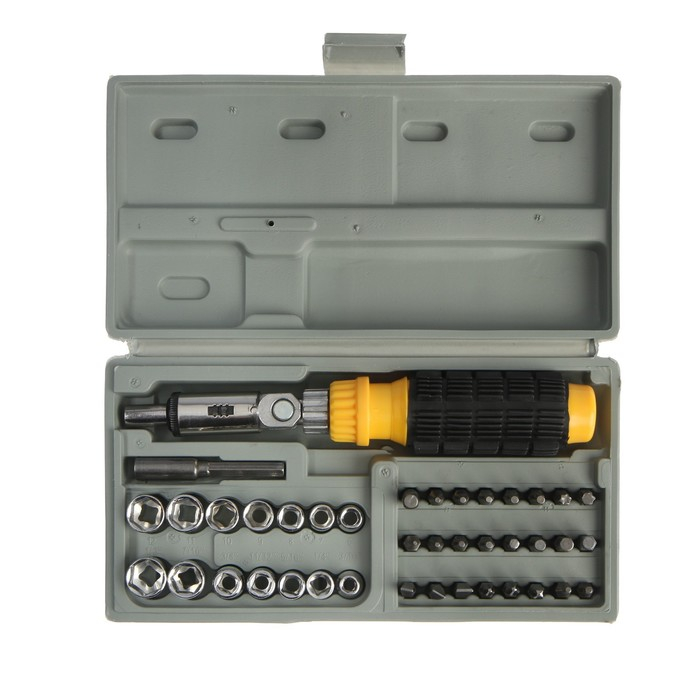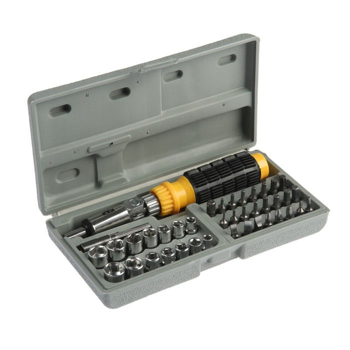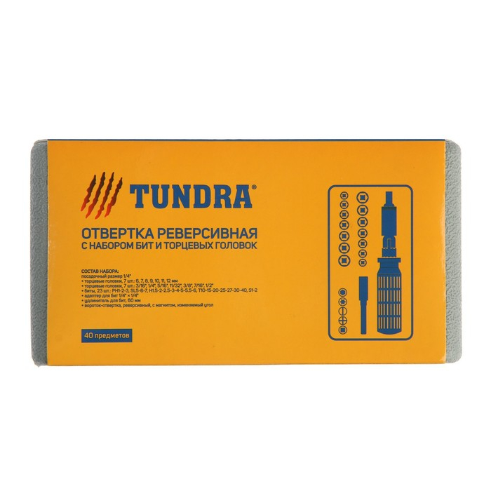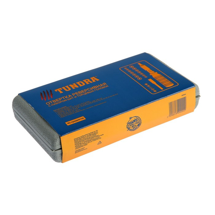 Отвертка с набором бит и головок ТУНДРА, реверсивная, в кейсе, 40 предметов
