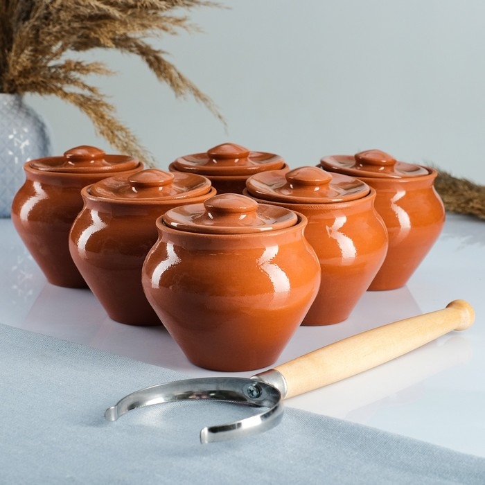 Набор "Вятская керамика №6" 0,5х6 + ухват, терракота
