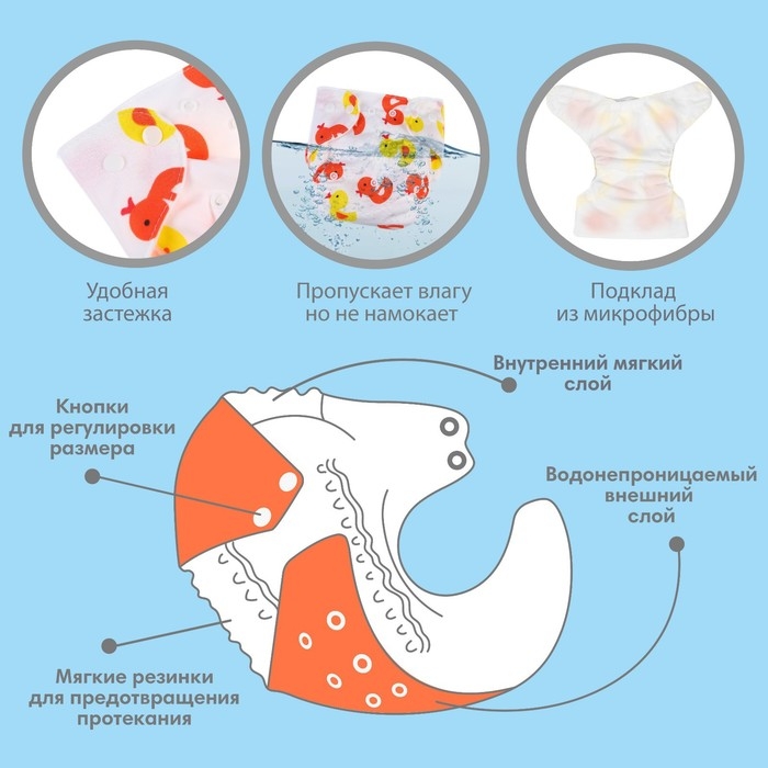 • Подгузник имеет удобный кармашек для вкладыша;