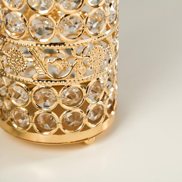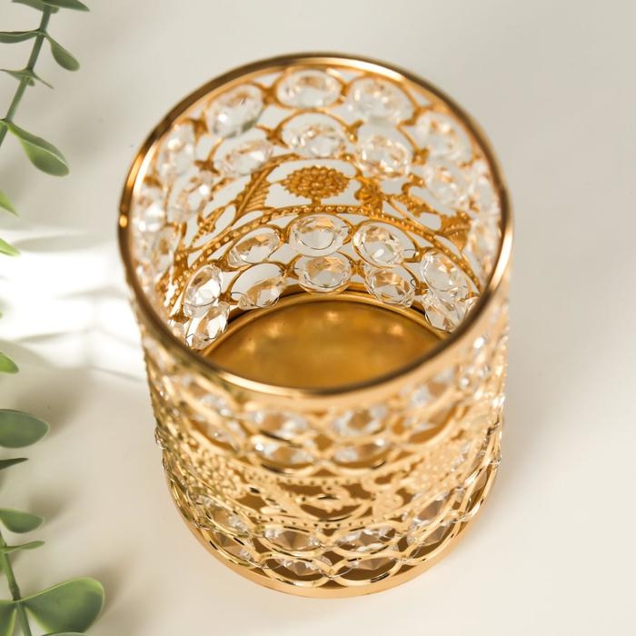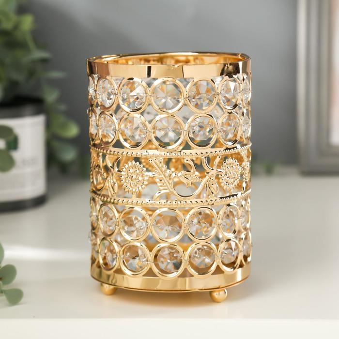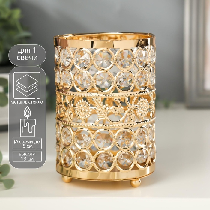 Подсвечник металл, стекло на 1 свечу "Кристаллы и подсолнухи" золото 13х9х9 см