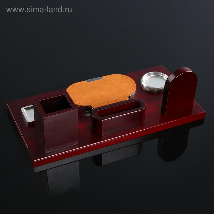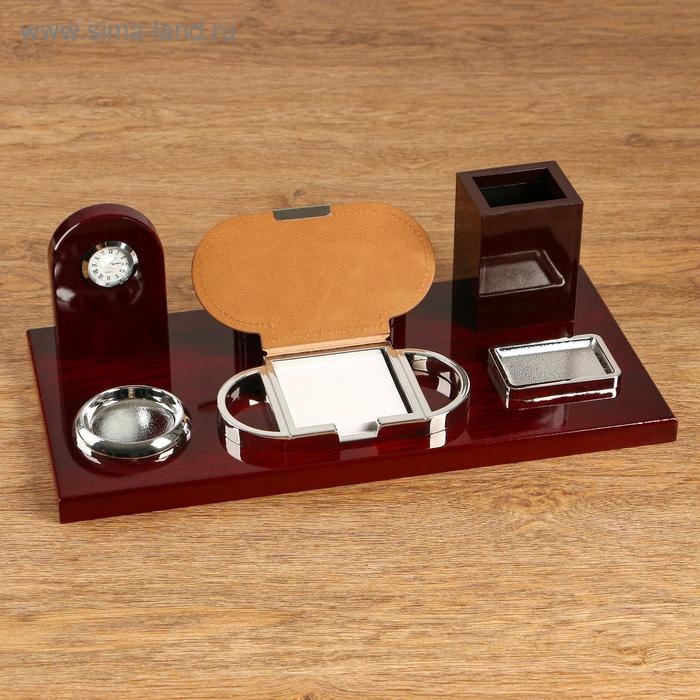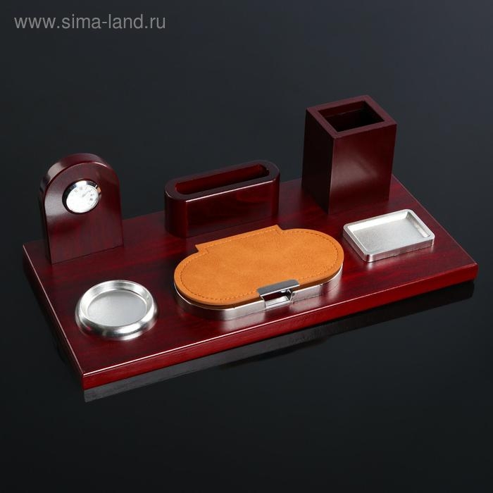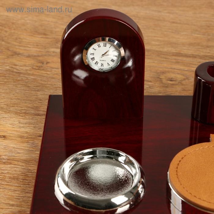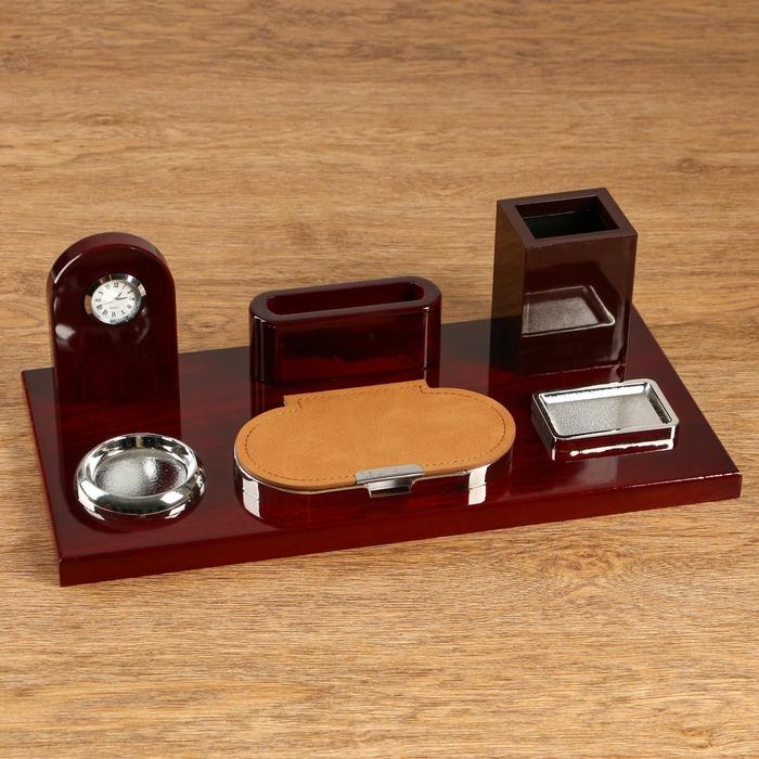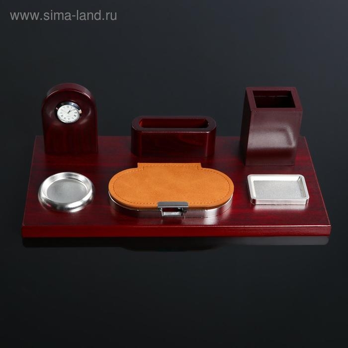 Набор настольный 6в1 с визитницей и часами, красное дерево