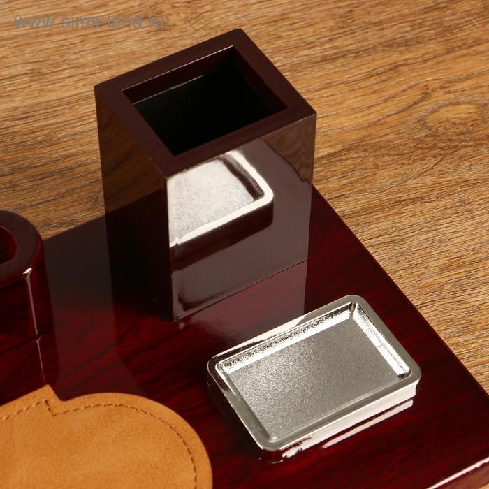 Компактный настольный набор поможет избежать хаоса на рабочем месте. Храните в нём канцелярские принадлежности или другие мелочи, чтобы правильно организовать пространство. К тому же изделие имеет минималистичный дизайн и выполнено под дерево, поэтому оно украсит собой любое место как декоративный элемент.