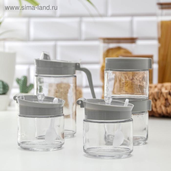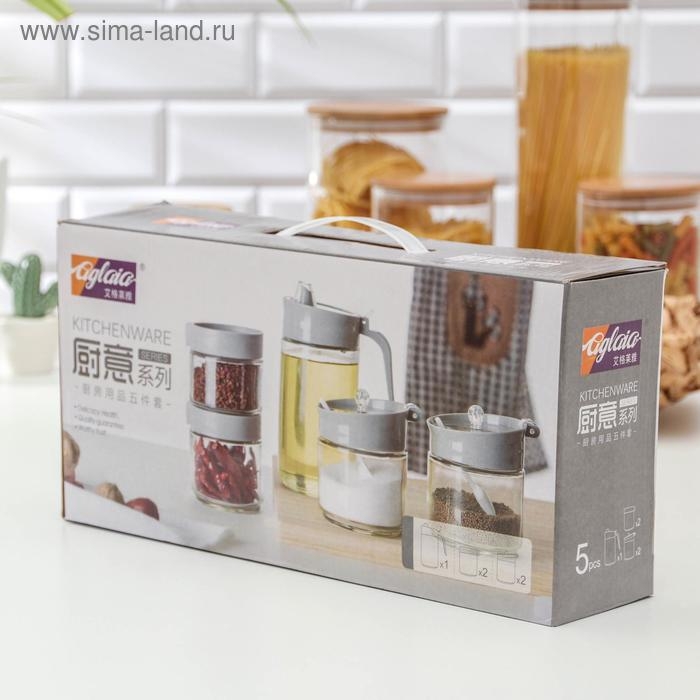 Набор стеклянных ёмкостей для сыпучих продктов с кувшином для масла «Модерн», 5 шт, цвет серый