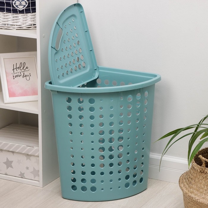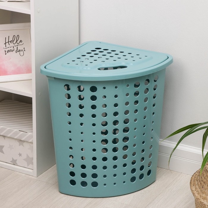 Корзина для белья угловая с крышкой «Молетта», 45 л, 40×51×53 см, цвет бирюзовый