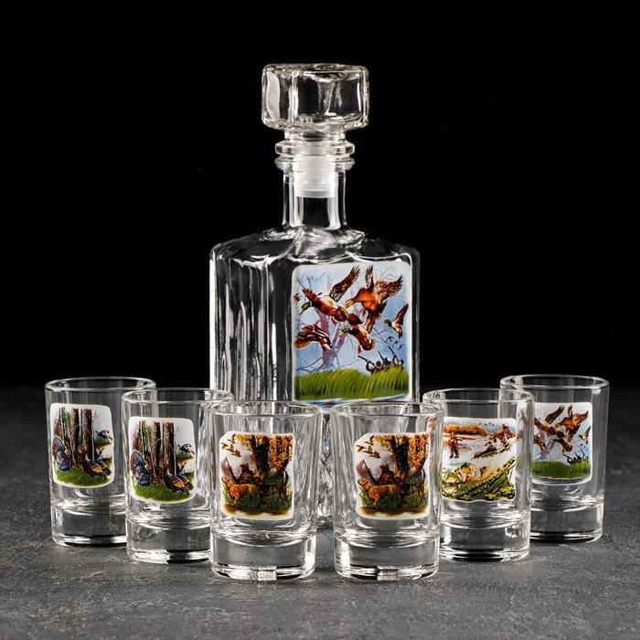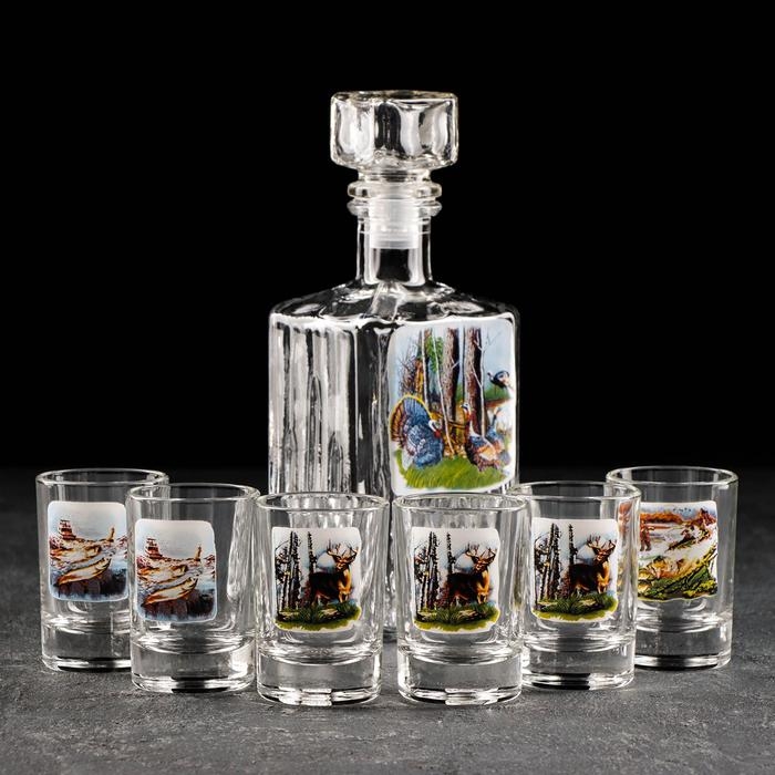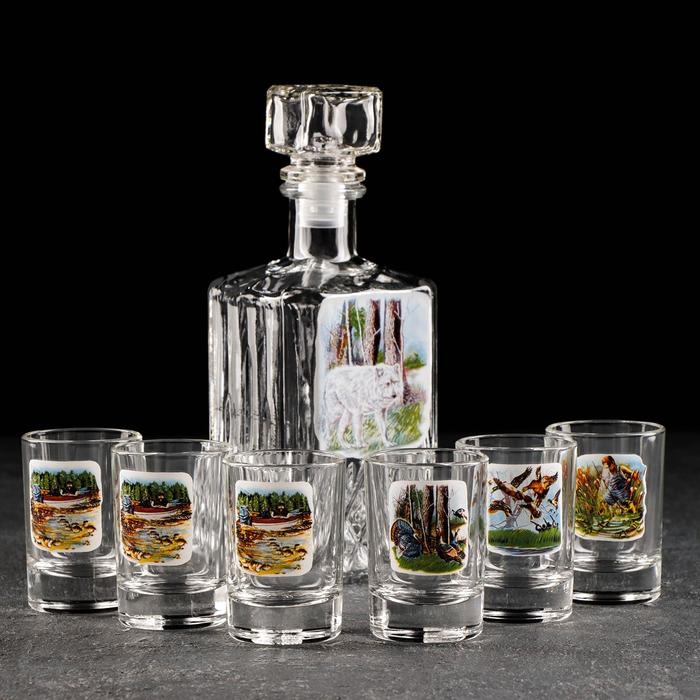 Набор питьевой «Охота-рыбалка», 7 предметов: графин 500 мл, стопка 50 мл, 6 шт, в чемоданчике
