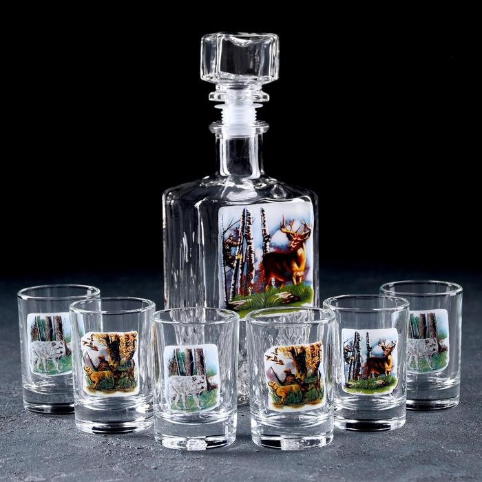 Набор питьевой Jungle, 7 предметов: графин 500 мл, стопка 6×50 мл, с гравировкой и напылением, цвет напыления серебряный