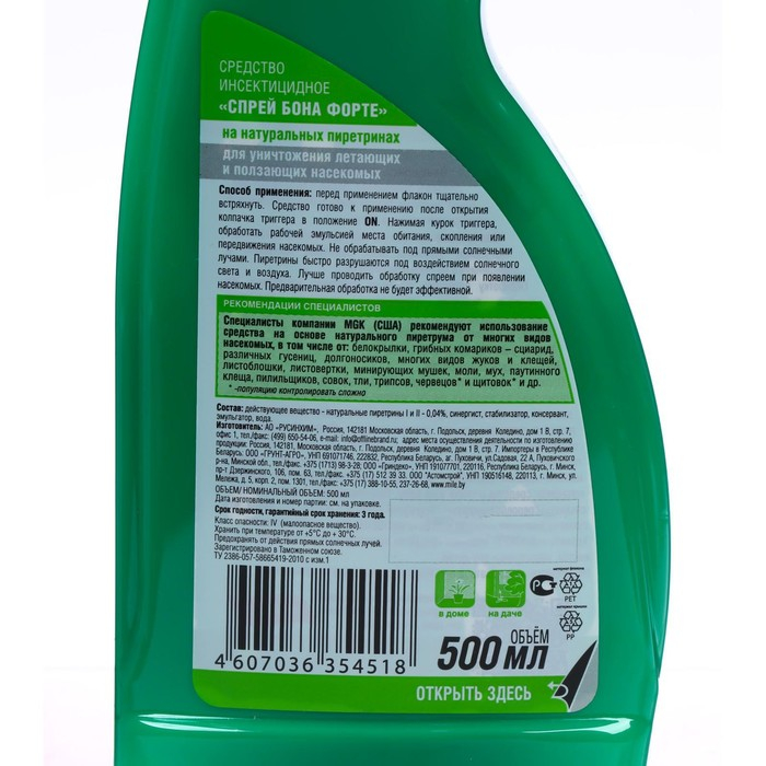 Спрей от насекомых Бона Форте на натуральных пиретринах, флакон 500 мл триггер