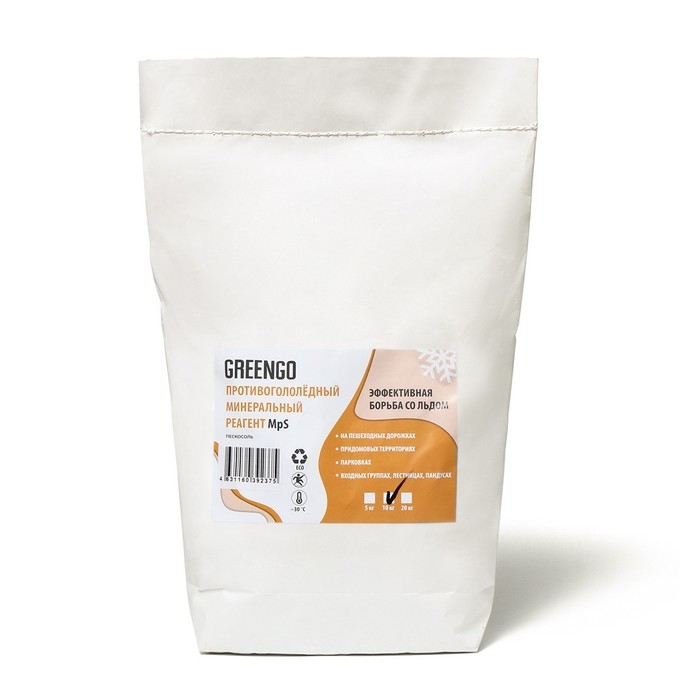 Реагент противогололёдный MpS (пескосоль), 10 кг, работает при —30 °C, в пакете, Greengo