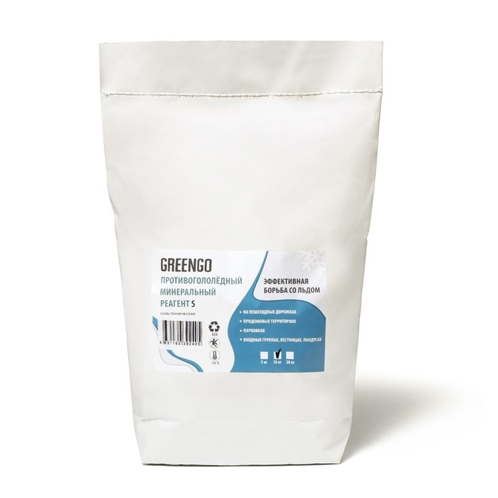 Реагент противогололёдный S (соль техническая), 10 кг, работает при —15 °C, в пакете, Greengo