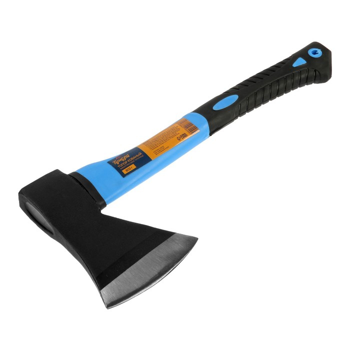 Топор кованый ТУНДРА, фиберглассовое обрезиненное топорище 38 см, 800 г