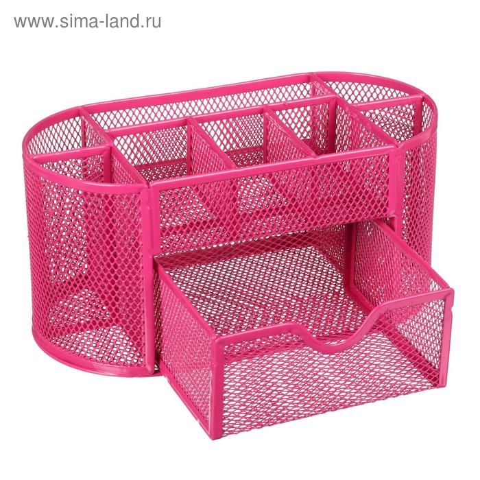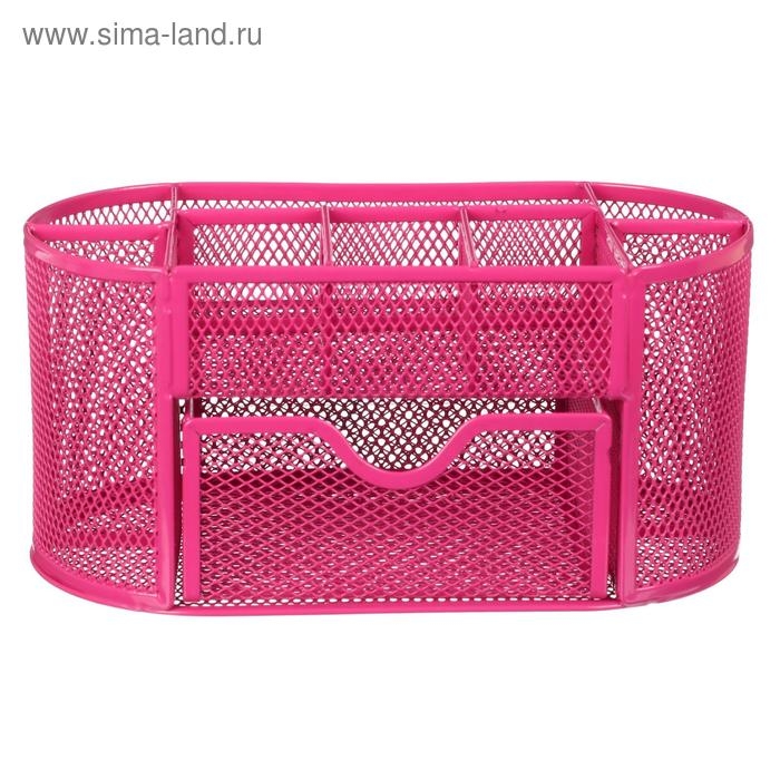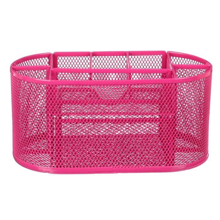 Подставка для канцелярских мелочей 9 отделений, сетка металл, розовая
