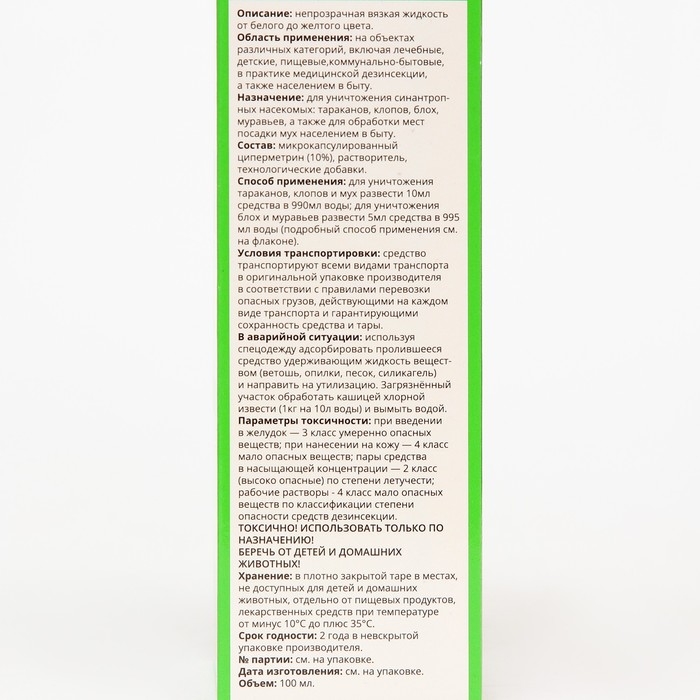 Средство инсектицидное микрокапсулированное"ЭКСТЕРМИН-Ц", без запаха, 100 мл