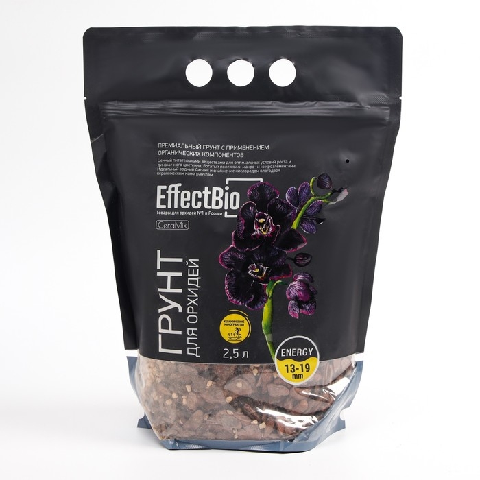 Грунт для орхидей ЭффектБио КераМикс Энержди 13-19 мм - это МИКС из специально приготовленных керамических наногранул богатых ценными микроэлементами в доступной для растений форме, с добавлением коры ангарской сосны обработанной по собственной уникальной технологии компании НПО «БиоТехнолоджи»