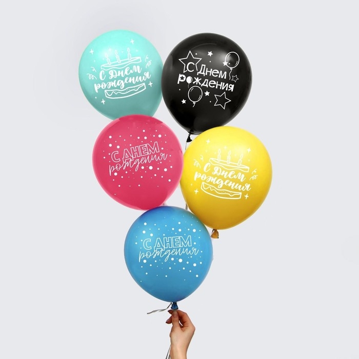 Воздушный шар латексный 12" «С Днём рождения!», 50 шт., МИКС
