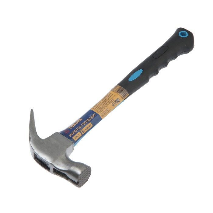 Молоток-гвоздодер ТУНДРА, боек с магнитом, фиберглассовая 2К рукоятка, 250 г