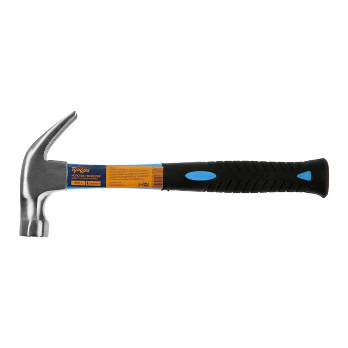 Молоток-гвоздодер ТУНДРА, боек с магнитом, фиберглассовая 2К рукоятка, 500 г