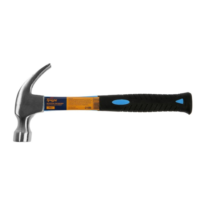 Молоток-гвоздодер ТУНДРА, фиберглассовая 2К рукоятка, 750 г