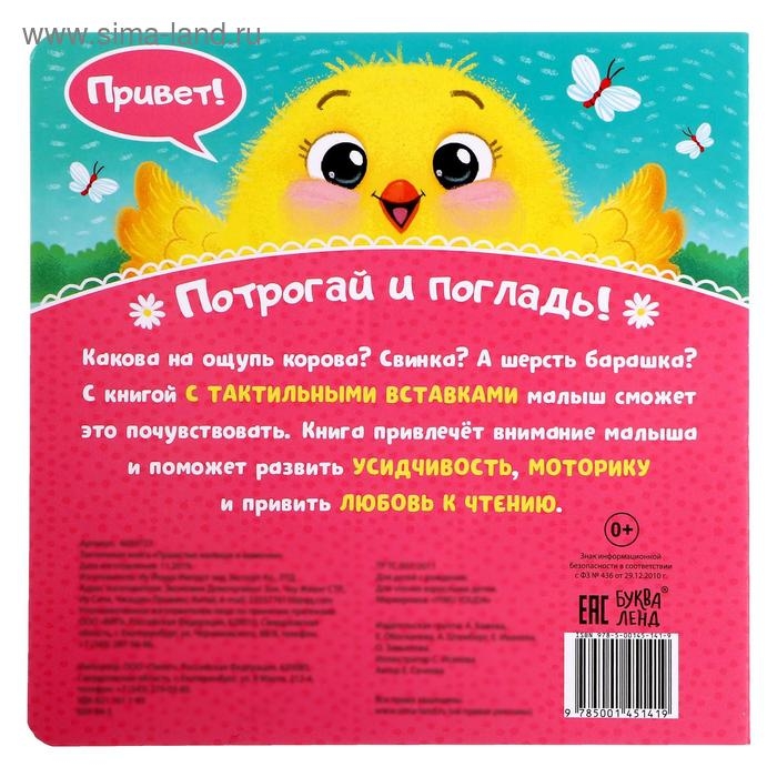 Вместе с родителями малыш прочитает стихии и узнает 5 пар разных зверушек, 5 из которых можно погладить.