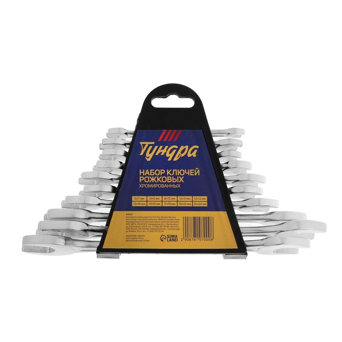 Набор ключей рожковых в холдере ТУНДРА, хромированные, 6 - 22 мм, 10 шт.