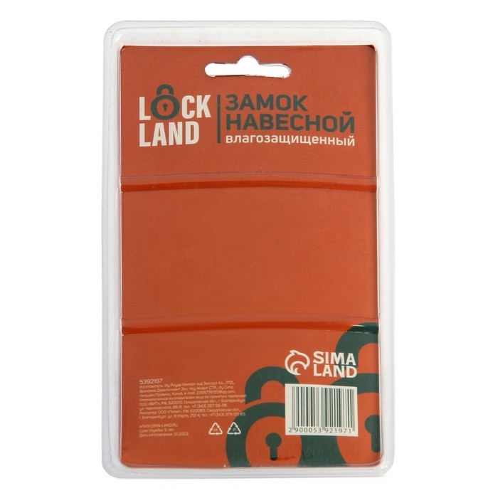 Замок навесной LOCKLAND, 50 мм, влагозащищенный, длинная дужка, 2 ключа, цвет черный