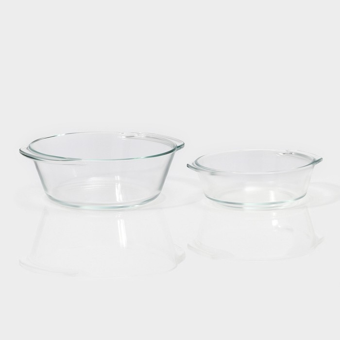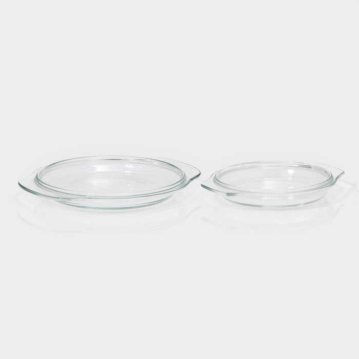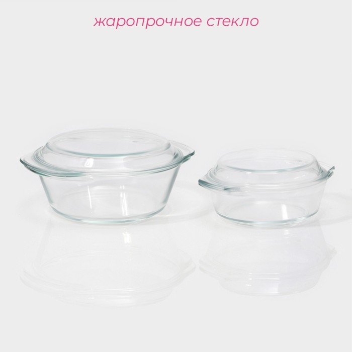 Набор кастрюль из жаропрочного стекла для запекания Доляна «Гратен», 2 предмета: 700/1500 мл, d=14,5/11 см, с крышками, толщина 4 мм