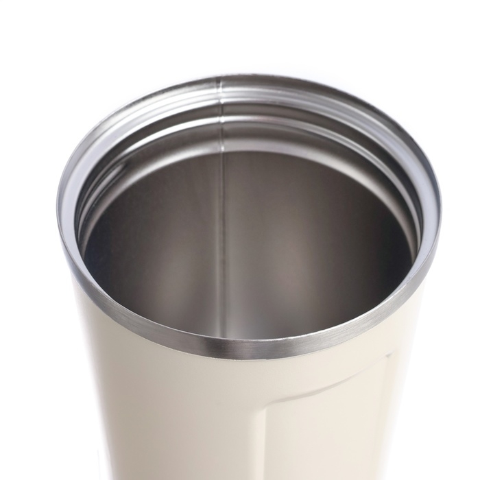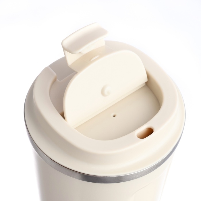 Термокружка выполнена из 304 нержавеющей стали, сконструирована по вакуумной технологии, с двойной стенкой, следовательно, долго держит тепло и не проливается. Снабжена откидывающейся крышкой на 180°, изготовленная из экологичного пищевого пластика, имеется фиксатор, возможность с легкостью использовать термокружку одной рукой. На дне, термокружка имеет специальную прорезиненную основу, предотвращающую царапины на поверхностях.