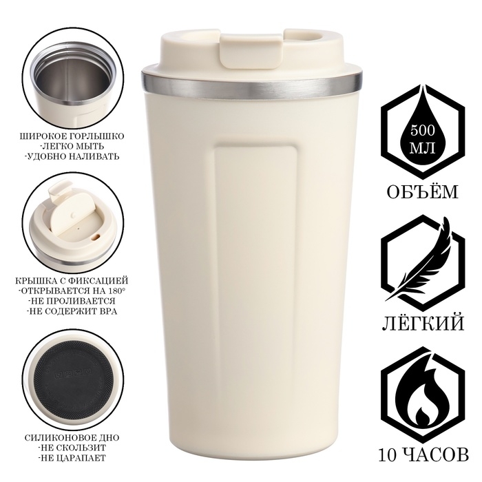 Термокружка для кофе и чая идеальна для офиса, автомобиля, длительных прогулок и детям в школу. Термос-кружка отлично подходит для автомобильных держателей. Благодаря специальному покрытию и силиконовой вставке, надежно лежит в руке и не выскальзывает.