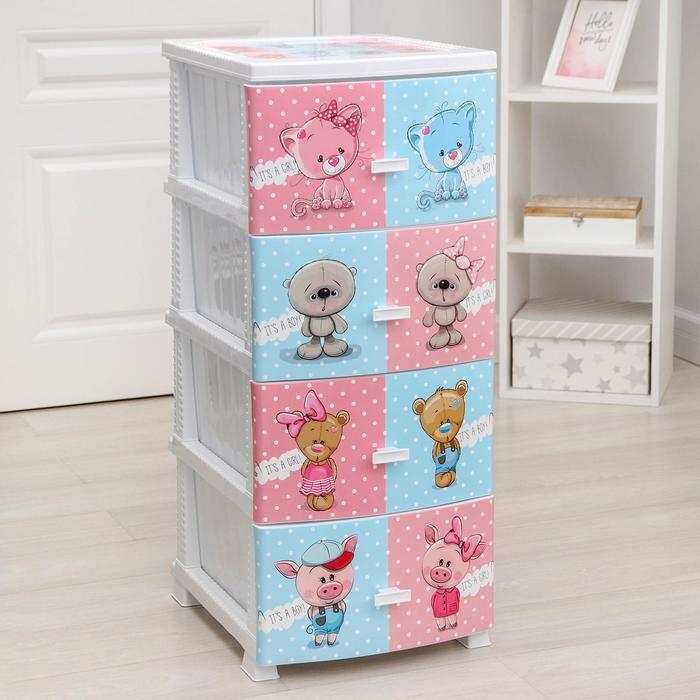 С помощью практичного пластикового комода вы правильно организуете хранение вещей. Изделие имеет жёсткую конструкцию за счёт цельных боковых стенок. Отсутствие острых углов делает его безопасным для ребёнка. Комод изготовлен из экологически чистого материала, не содержит вредных веществ.