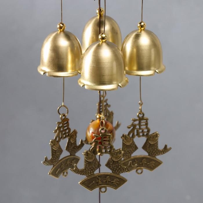 Музыка ветра металл "Большой колокол" 4 колокольчика 60 см