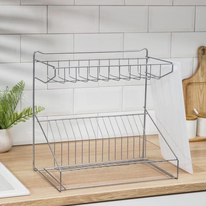 Сушилка для посуды с поддоном 2-х ярусная, настольно-настенная, 39,5×25×38 см, цвет хром