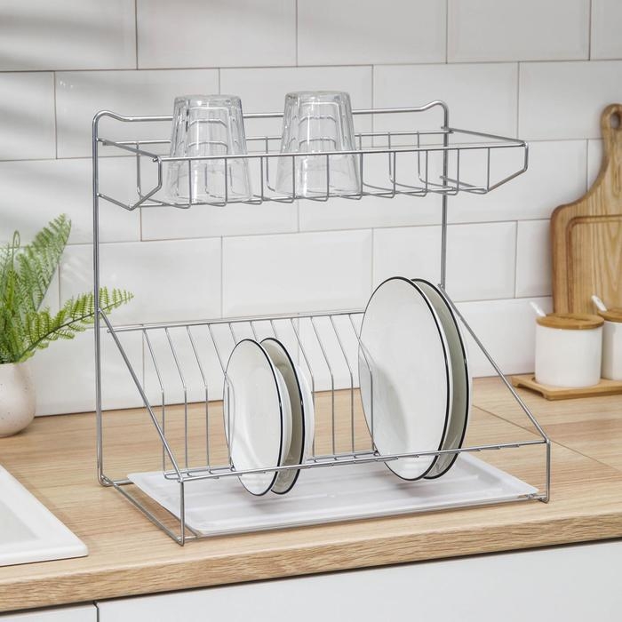 Сушилка для посуды с поддоном, 38×24×38 см, цвет хром