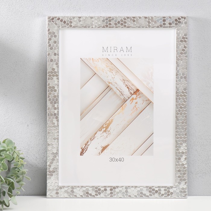 Фоторамка пластик "МИРАМ" 30х40 см, 651628 металлик (пластиковый экран)