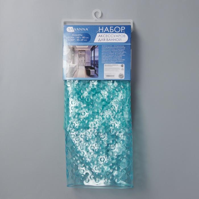 Набор для ванной SAVANNA «Селест»: штора 180×180 см, ковёр 38×69 см, цвет морской волны