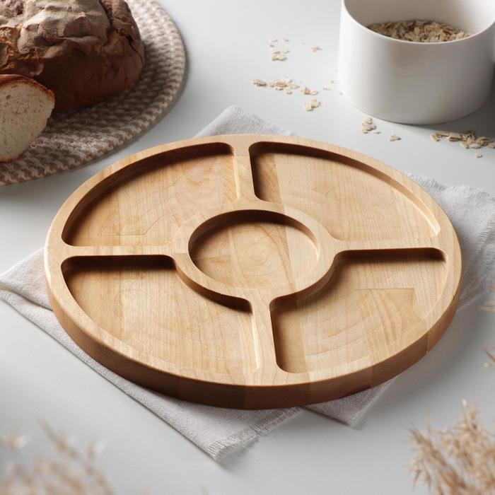 Менажница круглая Доляна, d=27 см, 5 секций, берёза