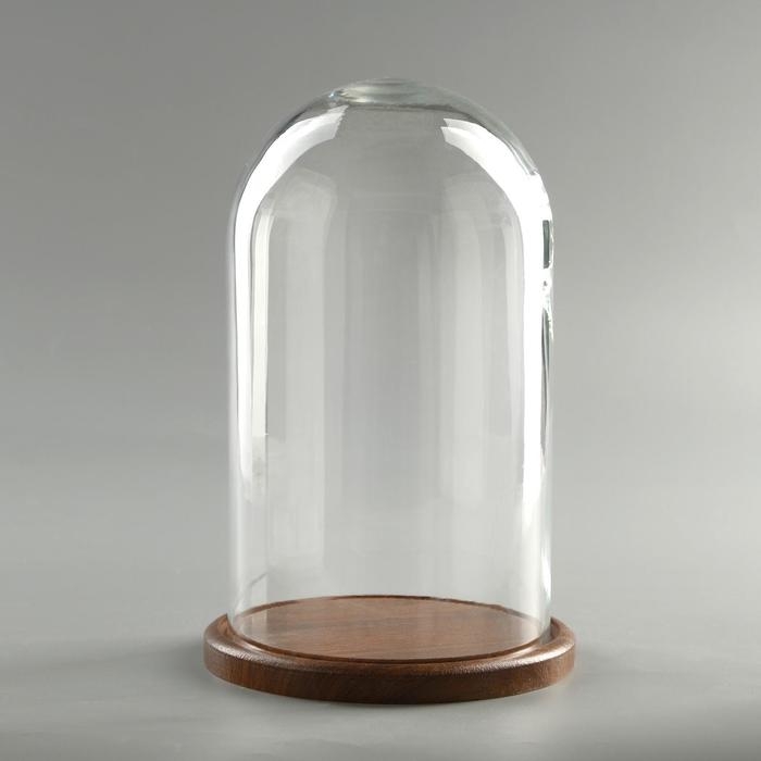 Стеклянный купол-клош на деревянной подставке "Венсан - 1", 30х15 см, коричневый