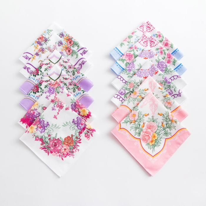 Платки носовые женские Этель "Летний день" 30*30 см, (набор 12 шт), рис. МИКС,100% хлопок