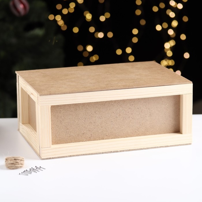 Подарочная коробка "Бандероль" деревянная с гвоздями и веревкой 30×21×12,5 см