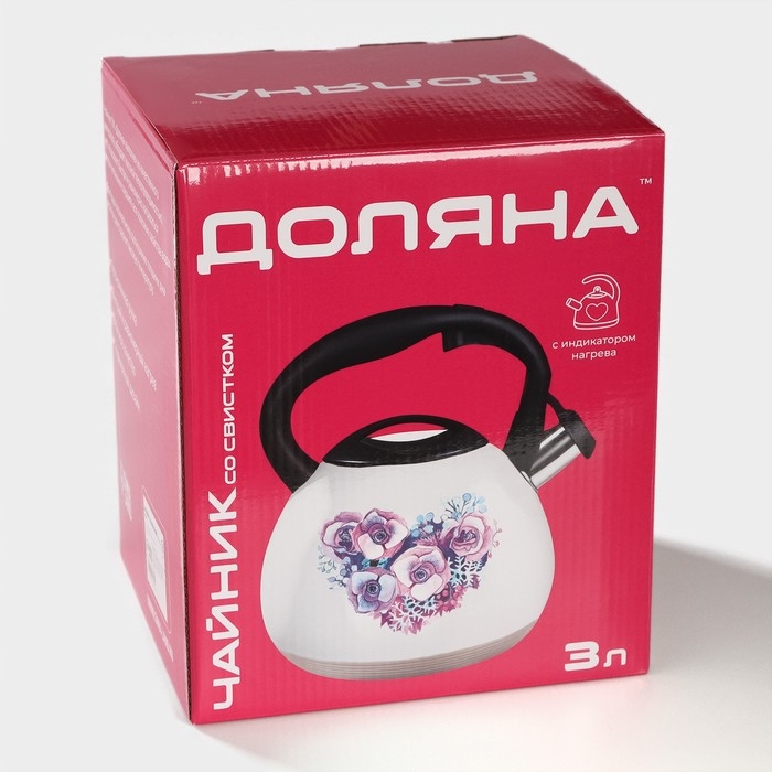 Чайник со свистком из нержавеющей стали Доляна «Лиса», 3 л, с индикатором нагрева