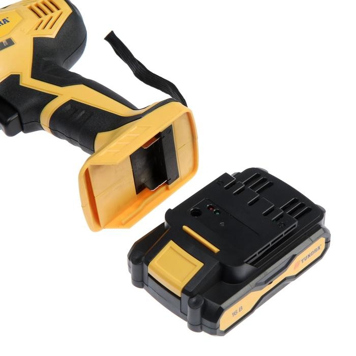 Шуруповерт ТУНДРА, патрон БЗ до 10 мм, подсветка, Li-ion 1300 mAh 16V, 550 об/мин, 24 Н*м