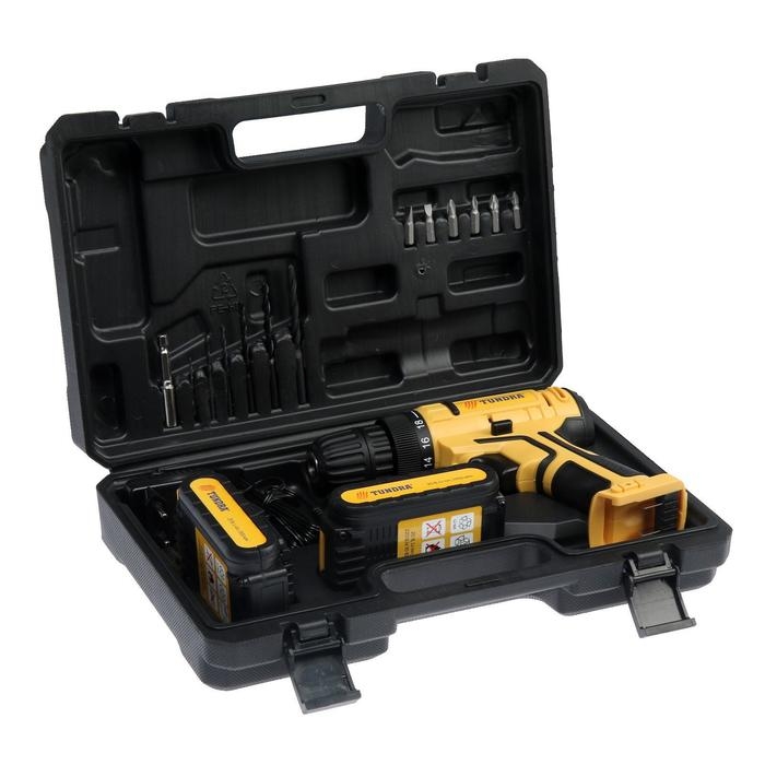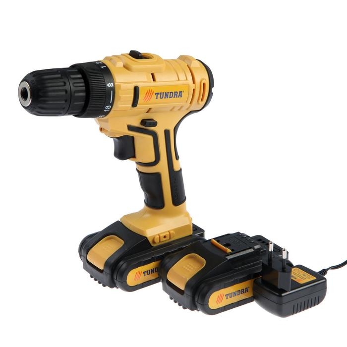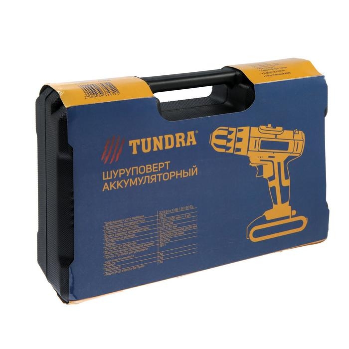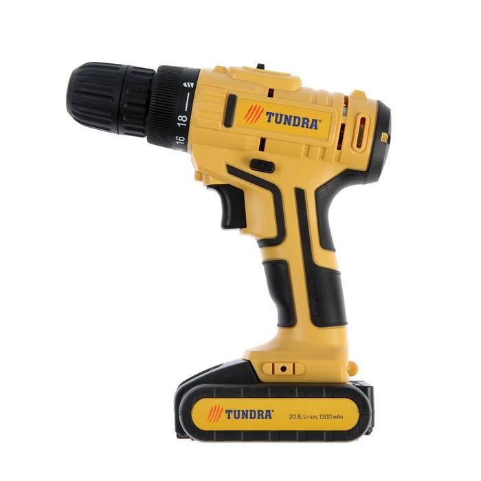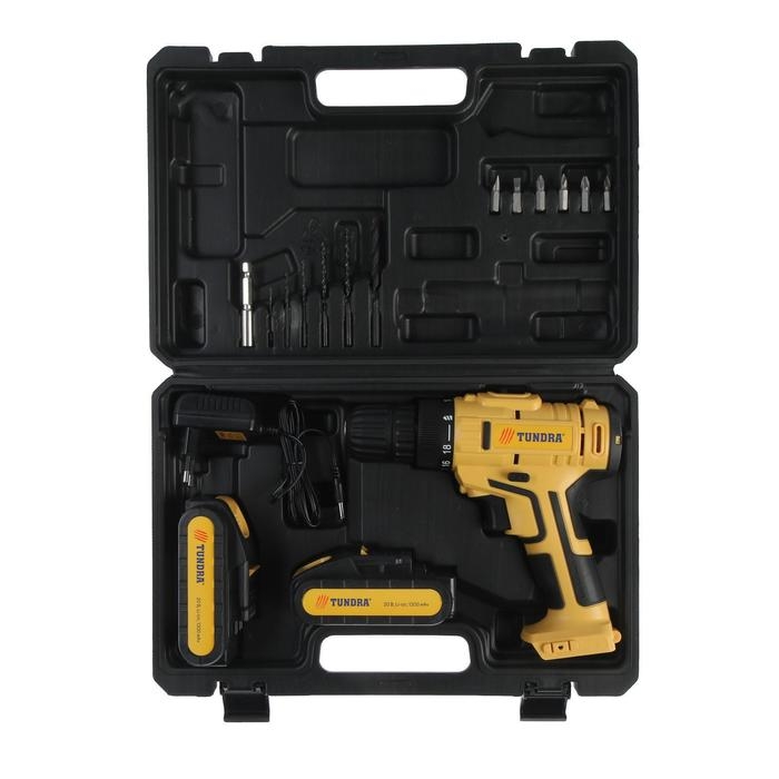 Шуруповерт ТУНДРА, патрон БЗ до 10 мм, LED, 2 х Li-ion 1.3 Ah 20V, 350/1250 об/мин, 28 Н*м