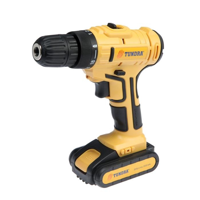 Шуруповерт ТУНДРА, патрон БЗ до 10 мм, LED, Li-ion 1300 mAh 20V, 350/1250 об/мин, 28 Н*м