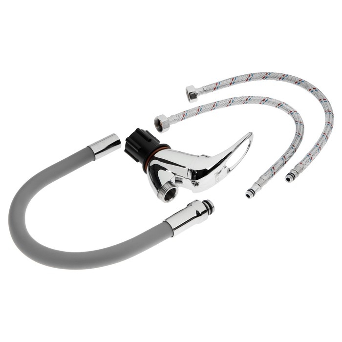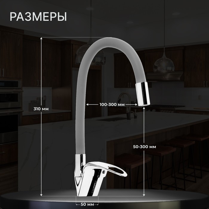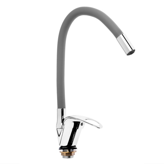 Смеситель для кухни ZEIN Z2115, однорычажный, гибкий излив, картридж 40 мм, серый/хром